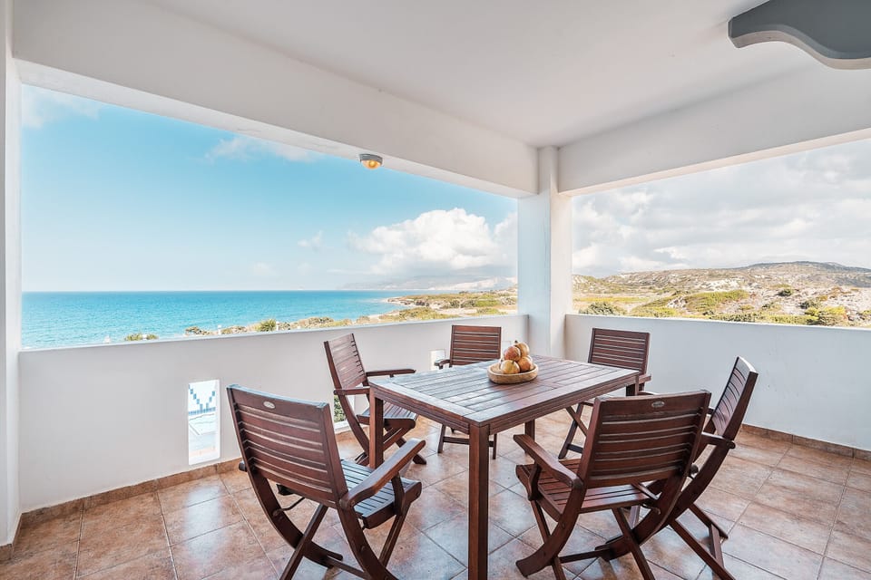 The house features a private outdoor area with 5 balconies. You can also enjoy a shared outdoor area with a pool, open terrace and barbecue facilities. The property is located near Prasonisi and a small dam, both ideal spots for water sports. Lindos is about 20 kilometres away.