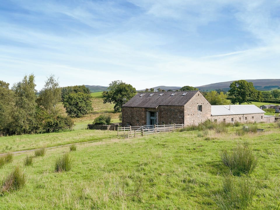 Games Room: Table Tennis, Pool Table, Dartboard, Woodburner. Oil central heating, electricity, bed linen, towels and Wi-Fi included. Initial logs for wood burner and open fire included. Highchair. Small garden. Enclosed, paved courtyard with garden furniture and barbecue. Private parking for 4 cars. No smoking. Please note: Couples and family bookings only.. In lovely surroundings of peaceful open countryside, on the edge of the Yorkshire Dales National Park, this award-winning, detached barn conversion, with its own small garden, is built around a cobbled courtyard and reached by a ¾-mile long farm track. Ingenious design has retained the barn’s unique character, while creating very spacious and well-equipped accommodation, ideal for holidays at any time of year. Set away from the farmyard, it is surrounded by farmland where sheep and cows quietly graze. There are wonderful walks straight from the door, with the fells and mighty Ingleborough in sight. At Ingleton (6 miles), there are miles of paths with steps and bridges along a wooded valley where waterfalls abound, and nearby White Scar Caves display classic features of limestone caverns. The very pretty market town of Kirkby Lonsdale is just 4 miles away, offering shops, inns, restaurants and a golf course.