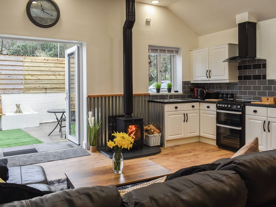 Living room/kitchen: Smart TV, Woodburner, Breakfast Area, Gas Oven, Gas Hob, Microwave, Fridge/Freezer, French Doors Leading To Garden