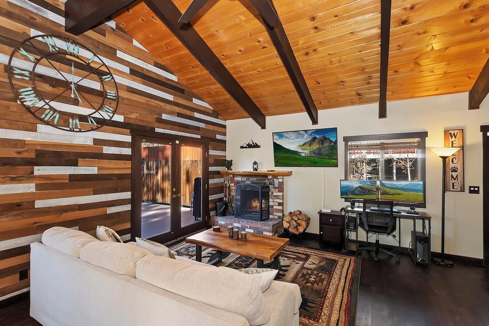 ✓ Wood-Burning Fireplace, Vaulted Ceilings & Large Smart TV
