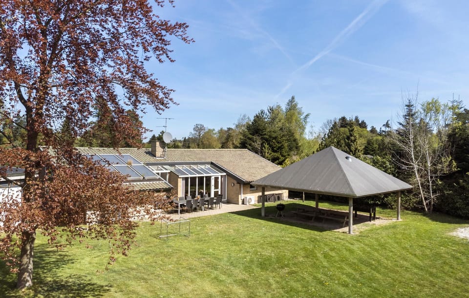 Relax in the adjoining conservatory or on the large south-west-facing terrace. Use the covered fire pit with barbecue, Mexican oven and picnic table for sociable evenings outdoors. The spacious garden offers a large sand play area with swings, slide and playhouse. Your children can really let off steam here.