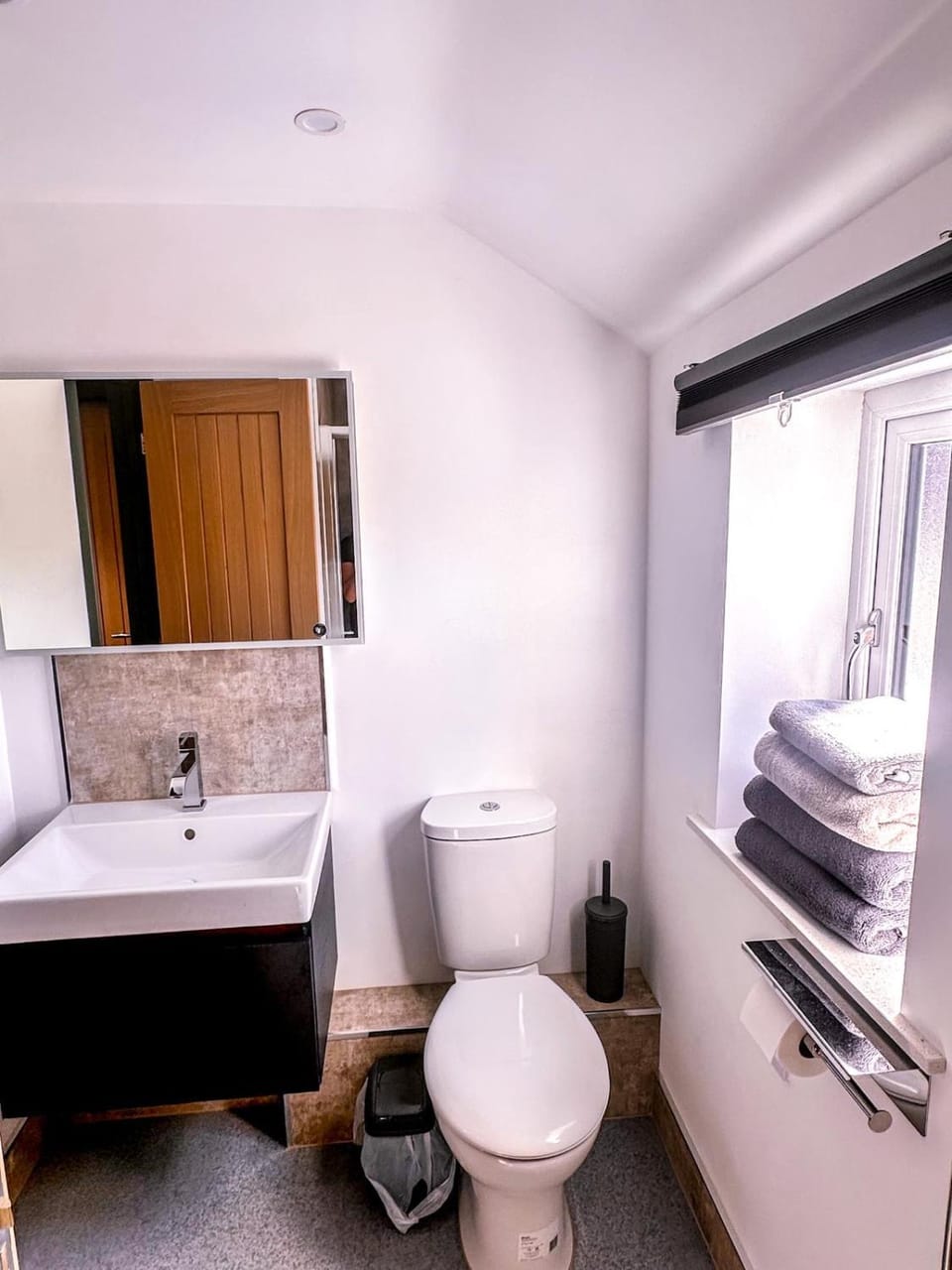 Also window is clear glazed so had to leave that blind down as people outside in pub car park could otherwise see into shower room. Maybe use opaque window film to give privacy?
