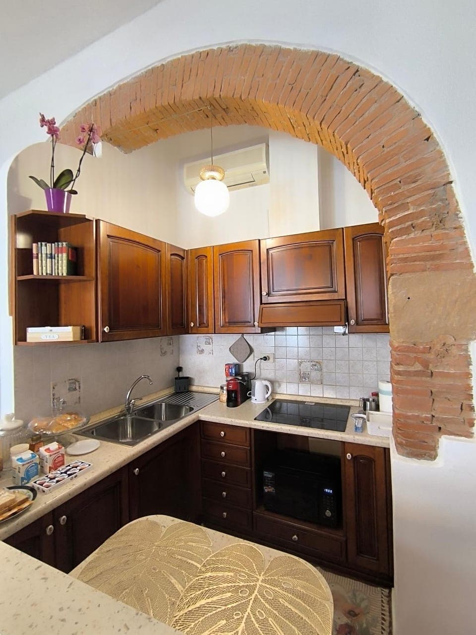 Appartamento caratteristico con mattoni a vista, ben organizzato, accogliente, dotato di tutto. La signora Cristina gentile e disponibile, offre un'abbondante colazione ( merendine latte biscotti cereali marmellate Nutella..), acqua the e succhi freschi in frigo yogurt.