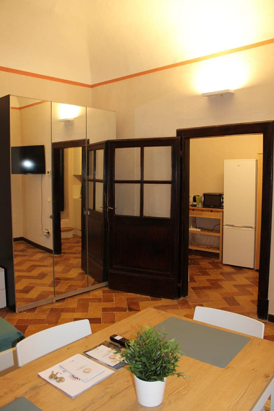 My wife and I stayed in this spacious 1-bedroom, 2nd-floor apartment in an amazing location right next to Piazza della Republica in the historic centre of Urbino for 5 nights. The apartment is old and rustic, with uneven steps, vaulted ceilings and original floors, but it was fairly comfortable. There is a supermarket (Conad), and plenty of shopping and dining options within walking distance. The kitchen was well equipped with a small fridge freezer, pod coffee machine, 2 burner electric cooktop, mini-oven, dishwasher, crockery, cutlery and glassware. There was a washing machine and a clothes rack for drying. Camilla was a great host – she was super helpful and responsive.