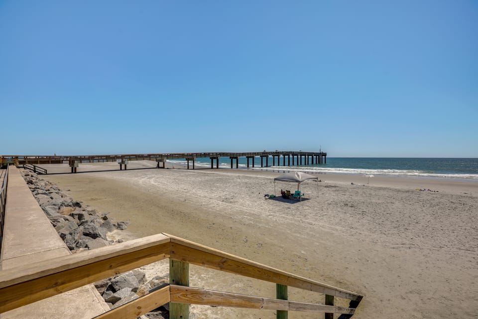 This charming 2-bedroom, 2-bathroom vacation rental condo, within walking distance to the sun-kissed shores of St. Augustine Beach, offers a perfect blend of relaxation and adventure. Surf the Atlantic, explore the Historic District by trolley, rent a boat, or fish off the St. Johns Ocean Pier. Bike through Anastasia State Park by day, then enjoy live music at the nearby amphitheater by night — all just minutes from your door!