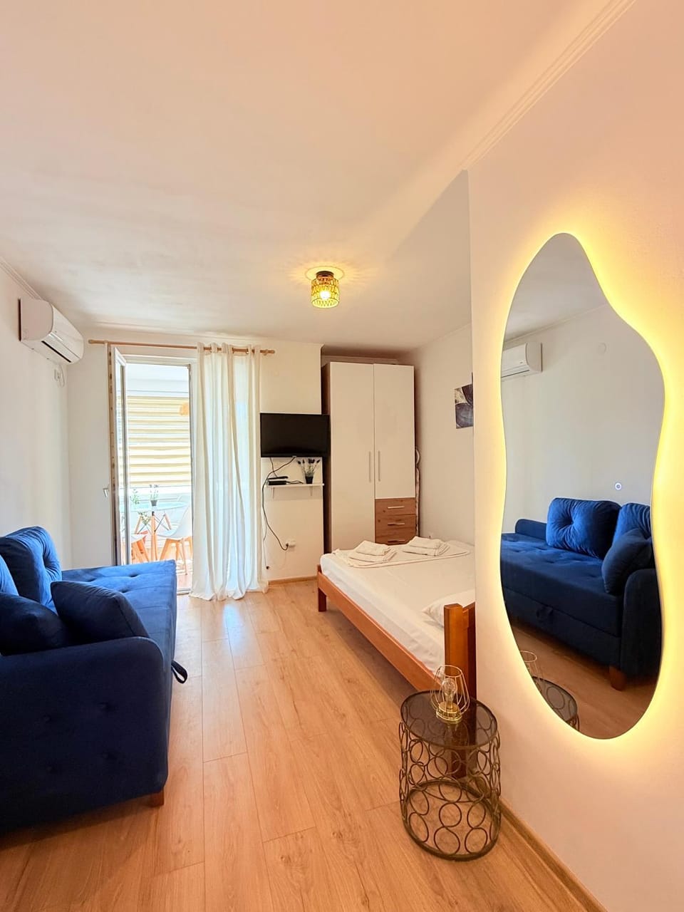Fantastican i udoban smestaj ,klimatizovana prostorija,fenomenalna tus kabina sa svim pratecim sadrzajem ,ves masina itdd(Nina vlasnica stana uvek dostupna za svaku informaciju ),posteljina se menja redovno.Kuhinja savrsena sa izlazom na balkon i pogledom na grad.Plaze blizu ,veliki market i restoran na 50 m.Sve pohvale i rado se vracam.