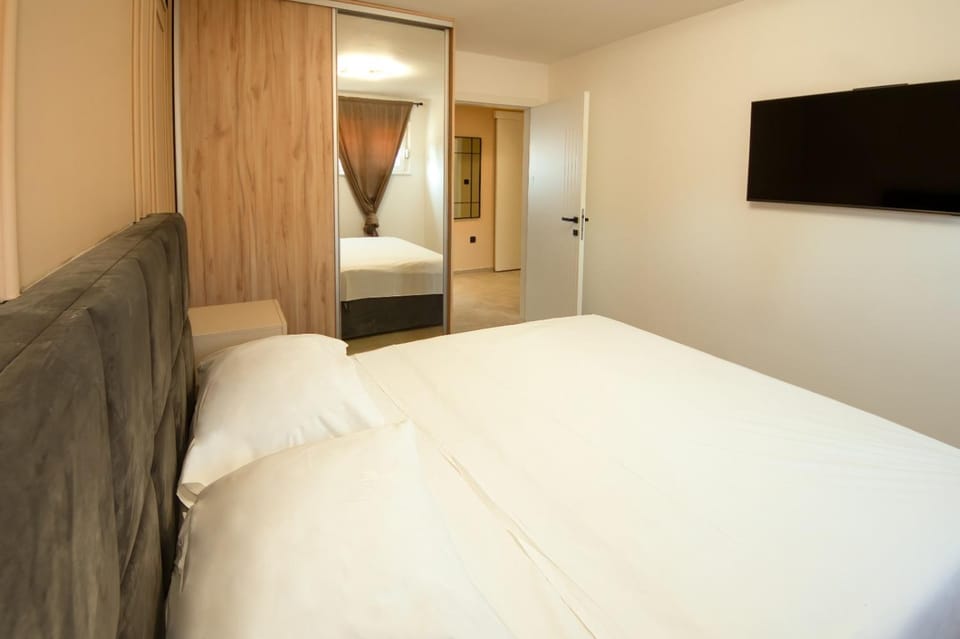 Uredno i čisto, održava se lijepo. Sadržaji u kuhinji i kupatilu sve što vam je potrebno imate na raspolaganju. Pogled na more i stati grad dok pijete jutarnju kafu ili jedete obrok. Djakuzi i sauna super stvar. Lokacija nekih 300m od centra maksimalno do 5 min hoda. Parking nije uz objekat ali je tu blizu možete stati ispred same zgrade i iznijeti stvari imate tu pločnik za vozilo neće vas niko opomenuti pa onda na parking. Parking zlata vrijedan i nije na ulici auto vam je sigurno jer u Šibeniku uske su ulice i često vam neko zakači auto i samo produži. Domaćin na raspolaganju za sve.