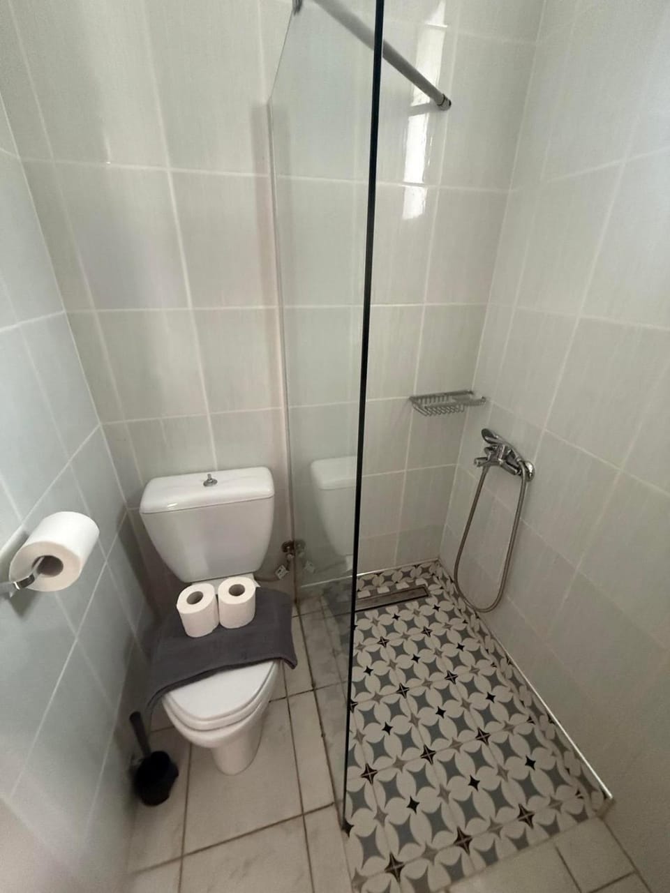 The shower toilet area very small