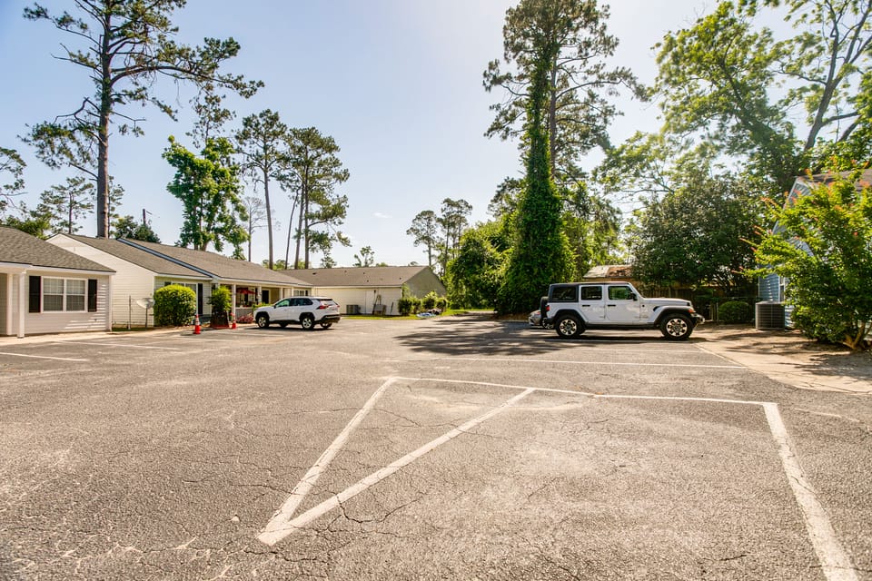 Yes, parking is listed as an amenity at 9 Mi to Moody AFB: Newly Updated Condo Near Dining. For more information, we encourage you to contact the property about where to park.