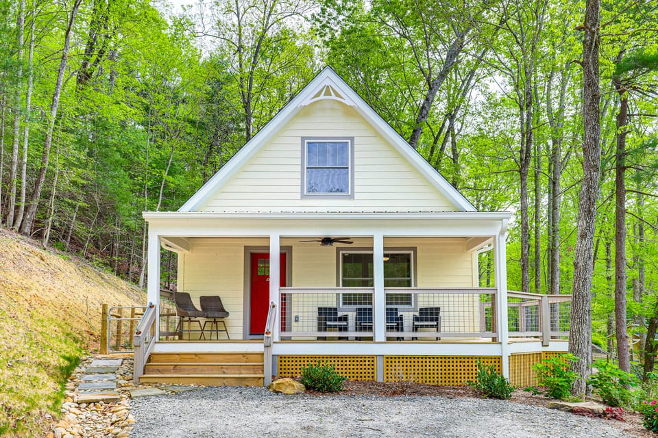 Explore nature and enjoy quality time with loved ones at this tranquil Hendersonville vacation rental! Boasting a front porch for sipping your morning coffee and a modern living space for relaxing after outdoor adventures, this 2-bedroom, 2-bath cottage provides an ideal home base. Looking to venture out? Hike in Dupont State Recreational Forest. Later, watch donkeys, goats, and cows roam the property!