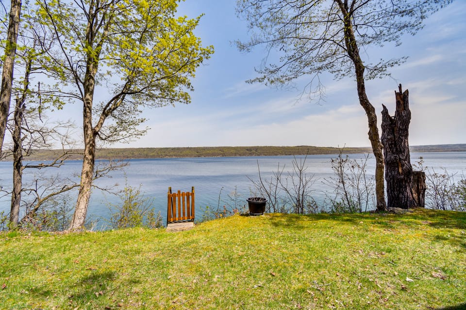 Let your troubles drift away as you relax lakeside at this vacation rental in Trumansburg. Spend your days boating on Cayuga Lake before venturing out to explore Taughannock Falls State Park or perusing the shops on Main Street. Afterward, return to the 2-bedroom, 1-bath retreat and unwind around the fire pit or heat up the grill for a cookout. This waterfront cottage has all the makings of an idyllic getaway.