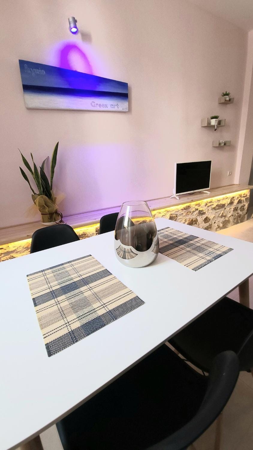 C'est un appartement spacieux décoré de façon moderne et épurée. Il est très bien placé pour un séjour à Nauplie, à proximité de commerces, du port et du centre historique de Nauplie.