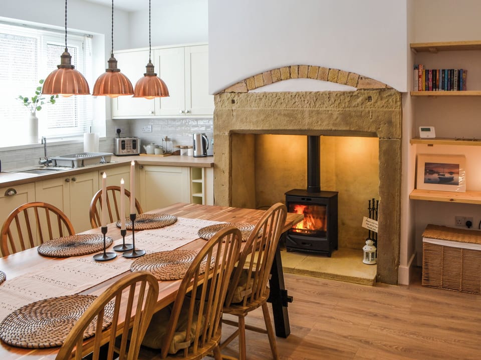 Step inside to find a spacious and modern haven. The well-equipped kitchen invites you to prepare delicious meals, while the large dining area is perfect for gathering around. Evenings are best spent cosied up by the wood burner in the bright, airy living room, a space designed with your comfort in mind. Upstairs, restful nights await. The kingsize bedroom and twin room both feature high-quality, cosy bedding, ensuring a peaceful sleep after a day of exploring. The modern bathroom, with its shower over the bath, offers a touch of convenience to your daily routine. For those traveling with dogs, the rear enclosed yard is a safe and welcoming space, also perfect for sitting out with a morning coffee or evening glass of wine.