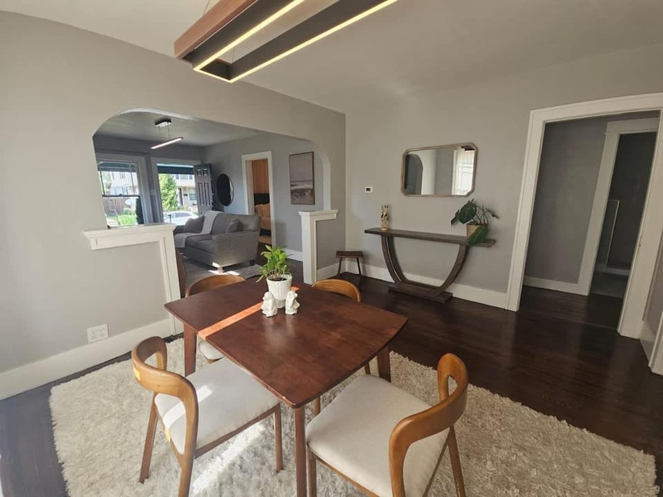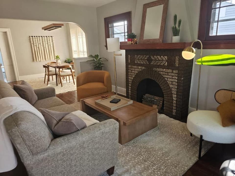 Charming property with lovely mid century vibes; super cool family hideaway in basement complete with air hockey for much fun; deck with sun shades; petite sunroom with French press for coffee; beds and pillows were comfortable; house was nicely air conditioned; staff was super responsive with questions upon arrival
