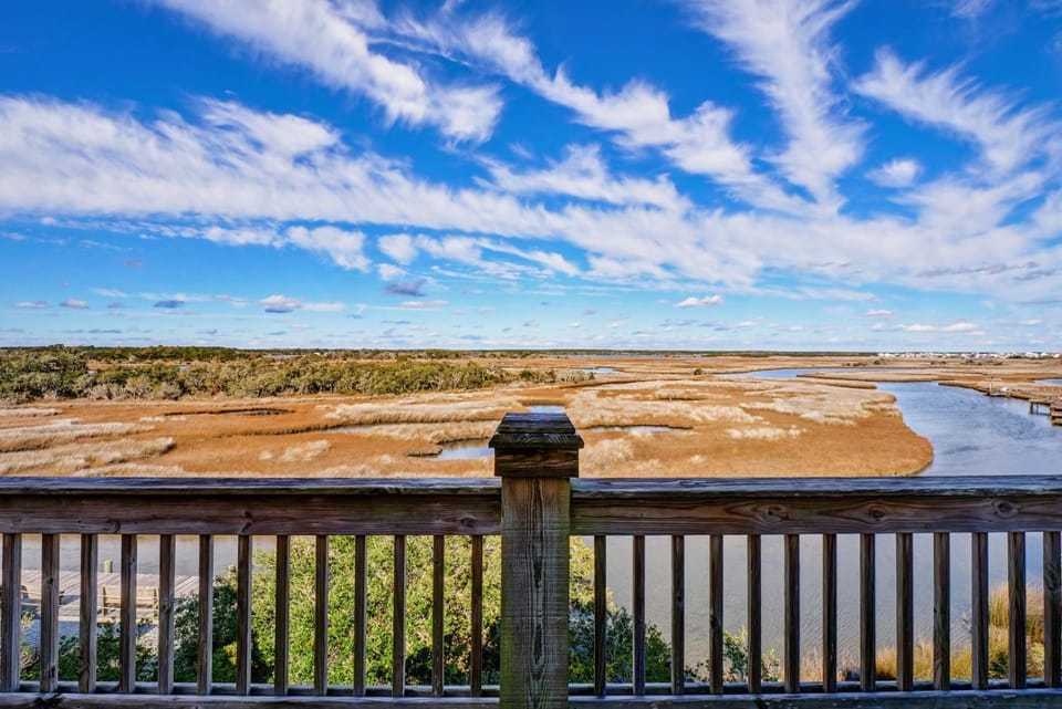 Business stays, family stays, couples stay, getaway vacation, and rental in Surf City at Sound-side home 200 steps from beach with water view, dock access, & deck for $730 for your next trip.