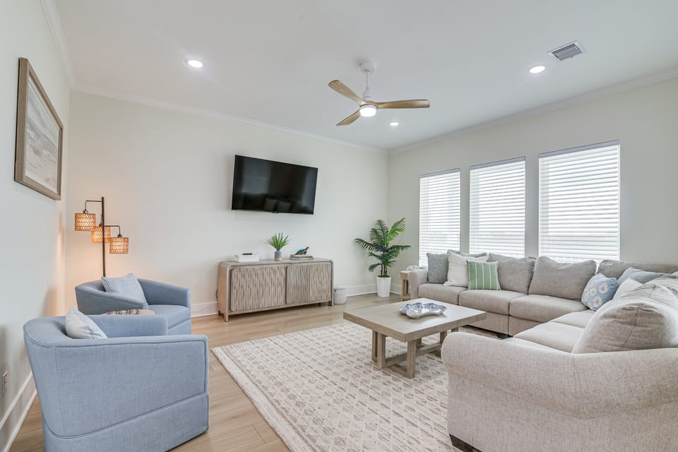 Salty air, sandy toes, and endless Gulf Coast adventures await at this vacation rental in Galveston! This 4-bed, 2.5-bath home has plenty of room for your crew to unwind, including a full kitchen, a cozy living area, and a covered patio — perfect for hosting cookouts. When you’re ready to venture out, treat the kids to a fun day at Moody Gardens, check out the shops on The Strand, or explore Pleasure Pier!