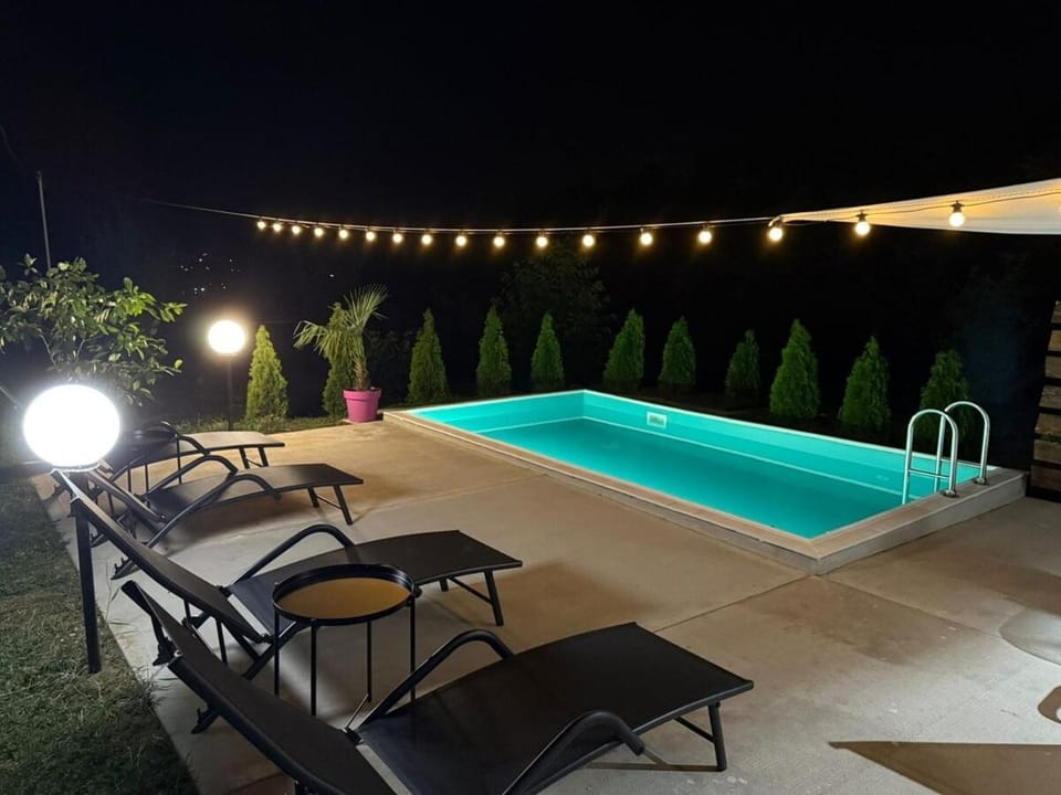 Yes, a swimming pool is available for use at Djordjevic house. Enjoy the water!