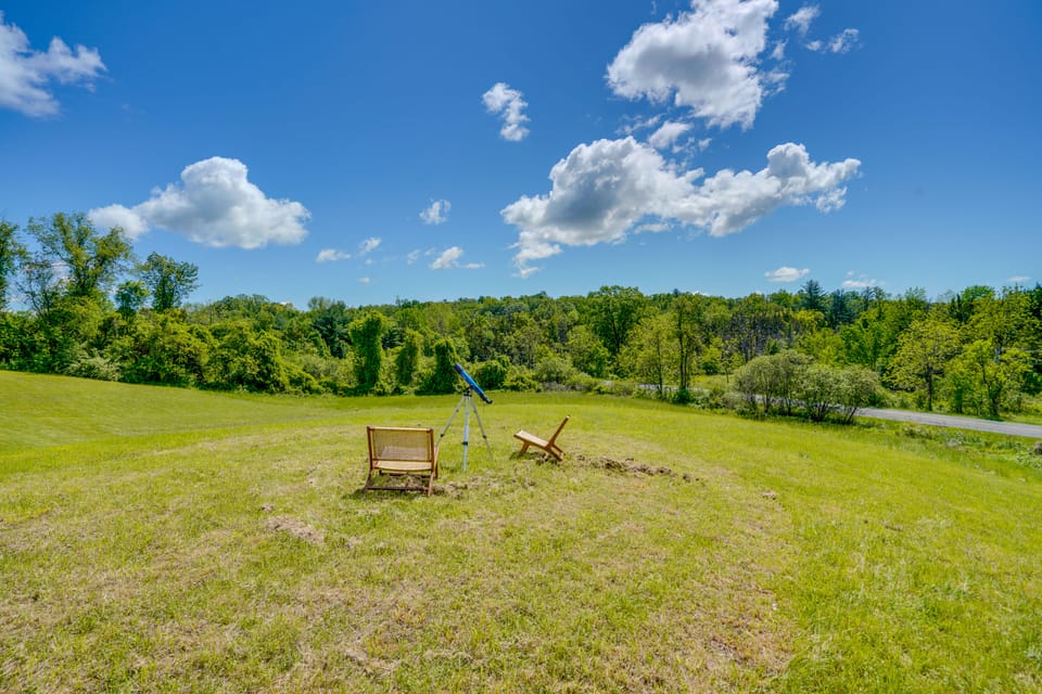 Nestled in the foothills of the Catskill Mountains, this 4-bed, 2.5-bath vacation rental has all the warmth and charm of a rural cottage while still offering the cozy comforts of home. This hidden gem features a peaceful location on 2 acres of sprawling land — ideal for stargazing and leaf peeping! Plus, you'll have easy access to scenic hiking trails, charming villages, and historical landmarks. An unforgettable adventure awaits!