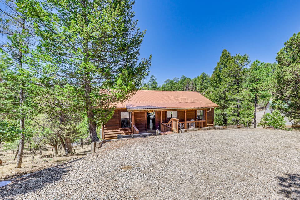 Nestled at the quiet end of a secluded road, this serene 3-bed, 2-bath vacation rental offers unmatched privacy and peaceful surroundings. Start your day with coffee on one of the decks, then explore Lincoln National Forest, hit the slopes at Ski Apache, or try your luck at Billy the Kid Casino. Once you’re back at the cabin, fire up the grill or cook a feast inside — the perfect way to wind down!