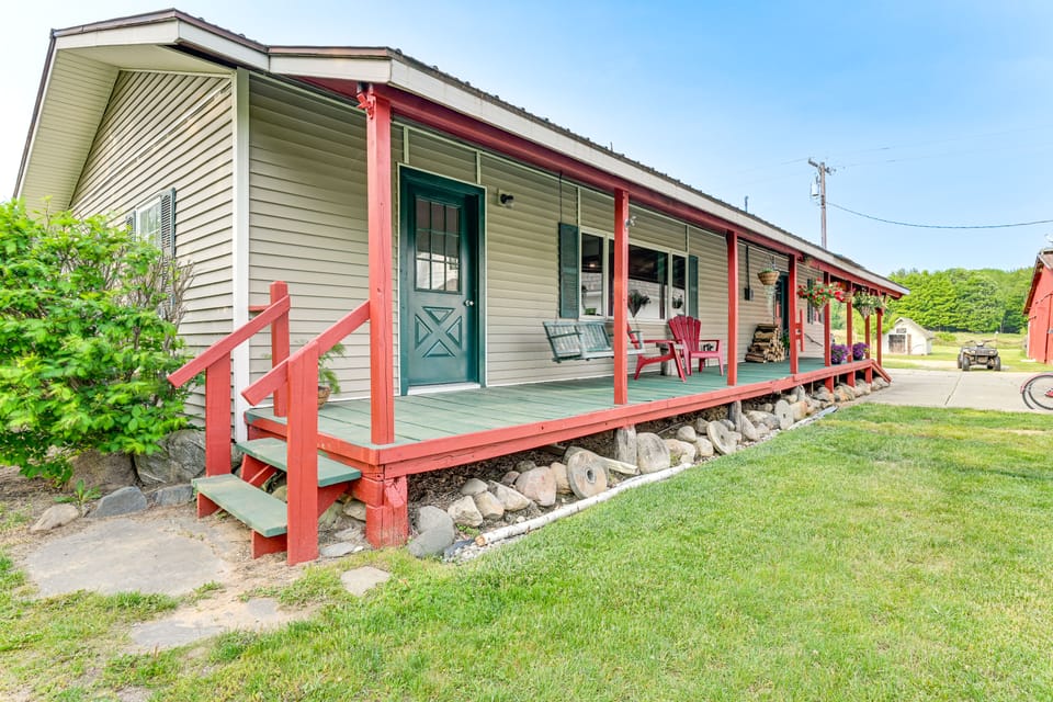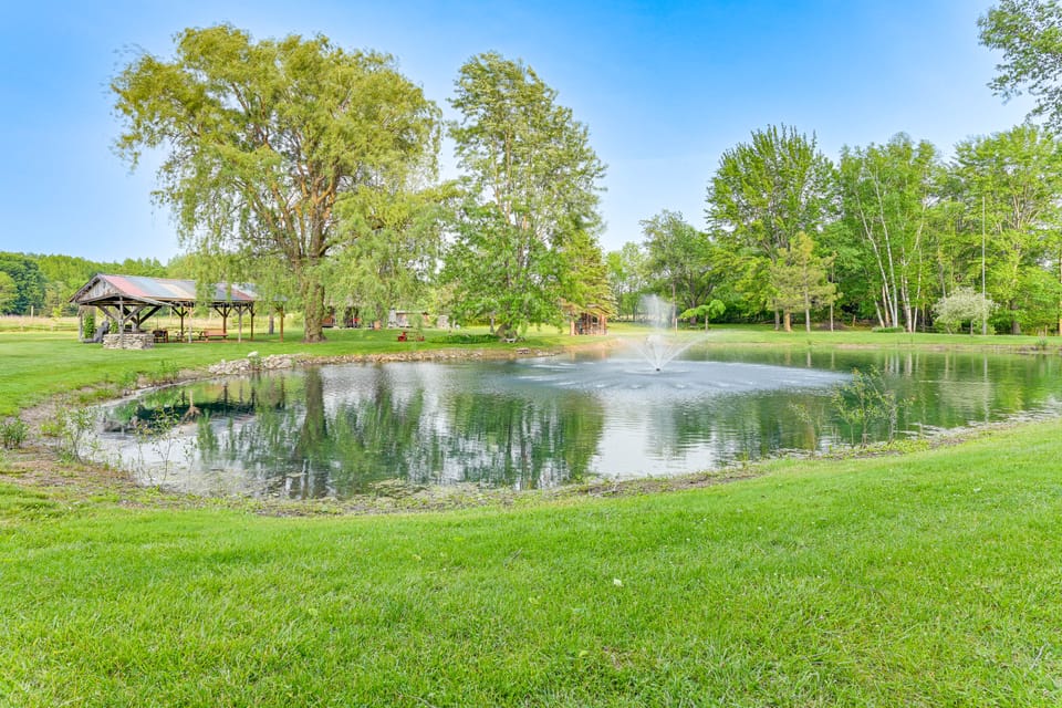 This Kingston vacation rental isn’t just a place to stay, it’s 10 acres of family fun, fresh air, and country comfort! With room to roam, a stocked pond, and a separate rustic cabin to retreat to, this home covers all the bases for a family getaway done right. Grill, swim, explore, and unwind by the fire pit while the farm animals wander by. Out here, it’s all about slowing down — together.