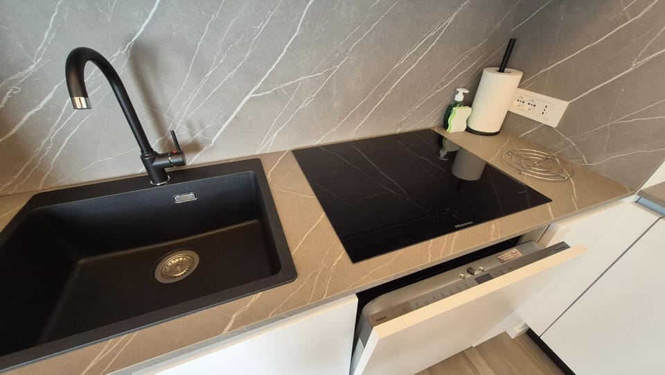 Sehr schönes und neues Apartment, voll ausgestattete Küche und wunderschöner Ausblick auf den See.