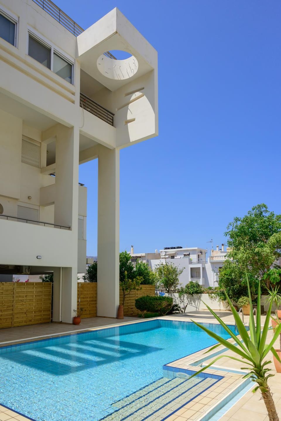 Great Location, super quiet, nice pool, huge apartment, climate control very silent, great balcony with sea view.