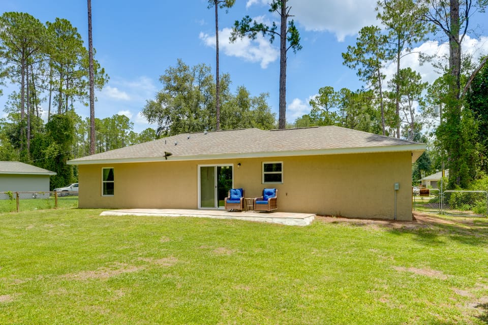 Whether you're here for outdoor thrills or a quiet escape from the hustle and bustle, you’ll love coming back to this 3-bedroom, 2-bath vacation rental in Ocala! Start your day with coffee on the patio, then take a boat tour at Silver Springs or soar through the trees at The Canyons Zip Line & Adventure Park. As evening sets in, wind down at the house with a delicious meal and a movie of your choice!