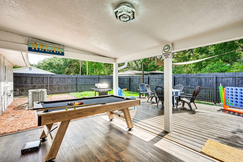 A memorable Florida adventure awaits at this 5-bedroom, 3-bath vacation rental in Lutz! This home features a full kitchen, an outdoor dining area for enjoying meals al fresco, yard games for family fun, and a cozy living space with a Smart TV. While you're in town, consider exploring The Florida Aquarium, enjoying a waterfront stroll along the Tampa Riverwalk, or taking a day trip to Clearwater Beach. Book your stay today!
