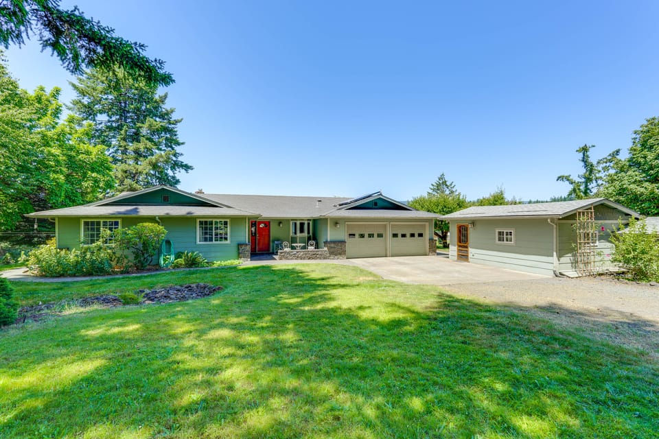 Adventure meets relaxation at this 4-bedroom, 3-bath vacation rental in Springfield, OR, nestled on the scenic Happy Pirate Farm. Check out the area's lakes, trails, and wineries then return to savor the peace of the countryside while cooking up dinner in the outdoor kitchen. From active days to peaceful evenings under the stars, this home is your ideal escape in the Willamette Valley.