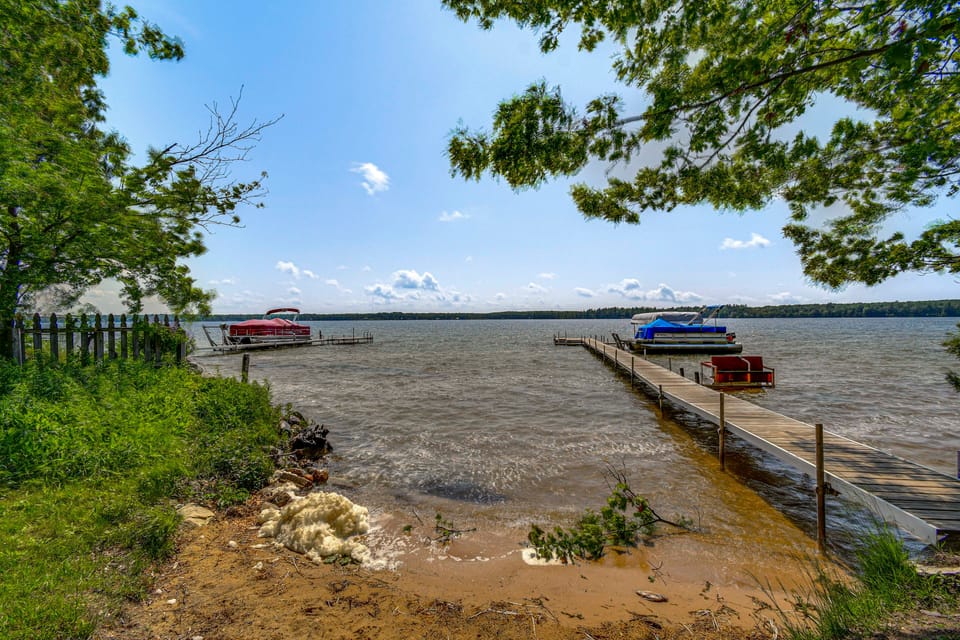 Set your sights on comfort and adventure right here in Kalkaska! This 2-bedroom, 1-bath vacation rental cabin offers a true Up North experience — it’s just steps from sparkling Manistee Lake and 10 miles or less from ATV and dirt biking trails. Unwind after a day on the water with a BBQ dinner on the deck, followed by stories around the fire pit or a reading next to the fireplace.