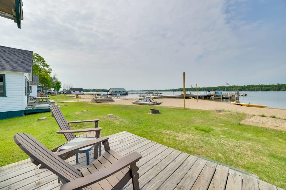 Experience Michigan’s Upper Peninsula from this 2-bedroom, 1-bath cabin in Cedarville — 35 miles from the iconic Mackinac Bridge. Set among the pines and on the bank of Lake Huron, the vacation rental offers access to community paddleboards, kayaks, and a dock where you can cast a line. After a day on the water or exploring the islands, gather around the fire pit, grill your fresh catch, and share stories under the stars!