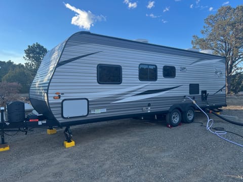 Ready to hit the road? Our cozy, clean, and fully stocked 2020 Jay Flight 26BH is the perfect home-on-wheels for families, couples, or groups looking to enjoy the great outdoors—without sacrificing comfort.