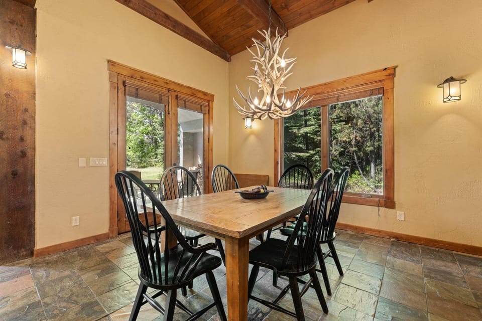Indulge in a peaceful retreat at Mather Chalet in the Heart of McCall +3000 sq ft, game & bunk room, 2 fireplaces, our elegant Chalet in McCall. Enjoy amenities including Air conditioning, Balcony/Terrace and Dryer, and more.