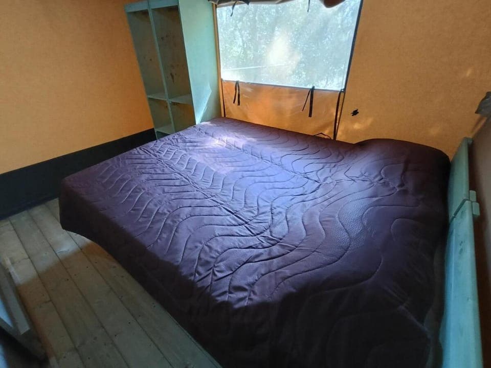 La tente était neuve, très propre, entourée de verdure, et nous n’avions pas de voisins proches car les tentes voisines n’étaient pas louées. Le personnel était très gentil.