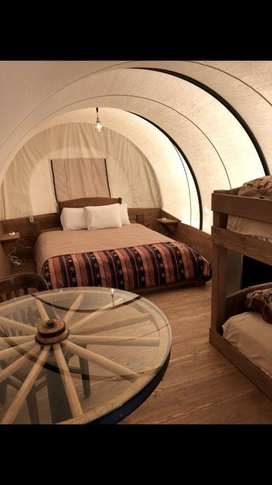 Discover the beauty of Norman with a stay at Oklahoma Glamping in this Wonderful Covered Wagon for Family Vacations near Oklahoma City, a top rated House with amenities such as Sauna, Garden and Laundry services, and more.