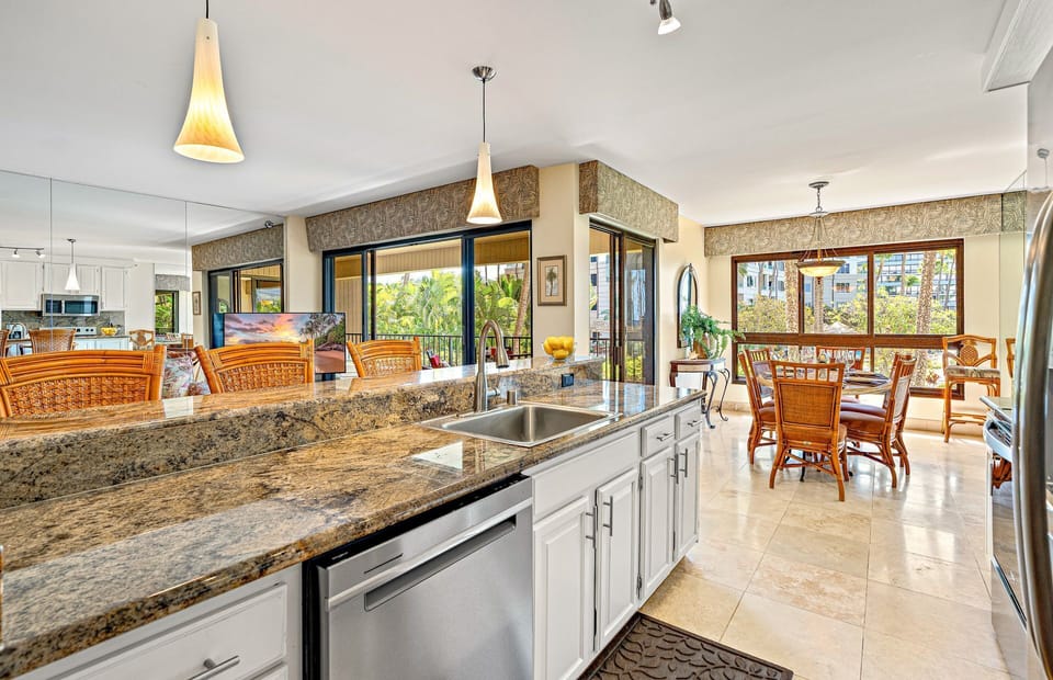 Enjoy an updated poolside common area with a two-tiered freshwater pool, a splash pad, a quiet upper pool, two hot tubs, and a large grilling area. The immaculate resort grounds connect directly to the popular three-mile-long Ka’anapali Beachwalk, providing guests effortless access to neighboring acclaimed restaurants, luaus, shopping, and activities.