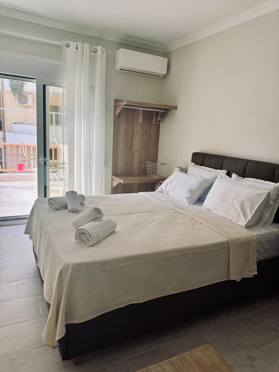 Η θέση του κλιματιστικού μηχανήματος είναι τέτοια που φυσάει κατευθείαν στο κρεβάτι χωρίς με αυτόν τον τρόπο να σου αφήνει ευχάριστη την αίσθηση να σου φυσάει ο κρύος αέρας ακόμα και με γυρισμένες τις περσίδες προς τα πάνω.