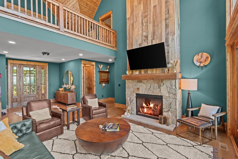 Business stays, family stays, couples stay, getaway vacation, and rental in Beech Mountain at Bull & Bear at EN -hot tub, EV charger, indoor and outdoor fireplaces for $420 for your next trip.