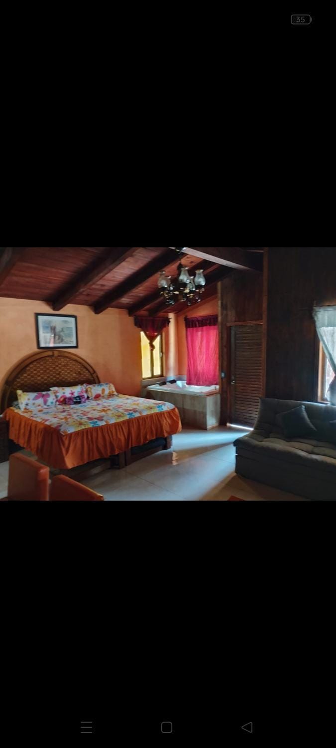 Experience the best of Mazamitla with this Cottage available for $82. This property is equipped with amenities including WiFi/Internet, TV and Hot tub/Jacuzzi, and more.