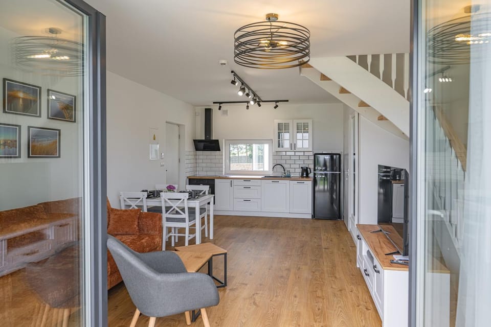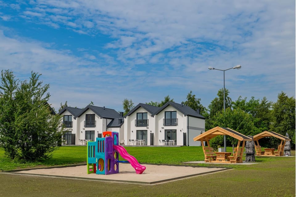 Widok na morze przepiękny, przydałoby się tylko bezpośrednie zejście w pobliżu do morza, domki nowe bardzo czyste i schludne, dobrze wyposażone, z piękną częścią zieloną i placem zabaw dla dzieci (piaskownica, mała plac zabaw, trawa)