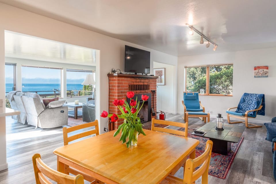Experience vacation in Gualala with our House, Private vacation home with huge ocean views, hot tub, games--walk to restaurants. Enjoy amenities such as Pets allowed, Family friendly and Non-smoking, and more.