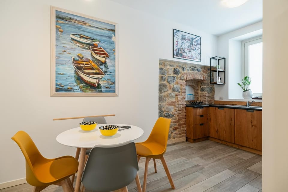 This is a ground floor converted appartment in Iseo’s narrow lanes. Like most properties in the area it is accessed directly from the road side and has no outdoor space. It is surrounded by taller buildings. This means you cannot see daylight from any window and get no direct sunlight into any room.