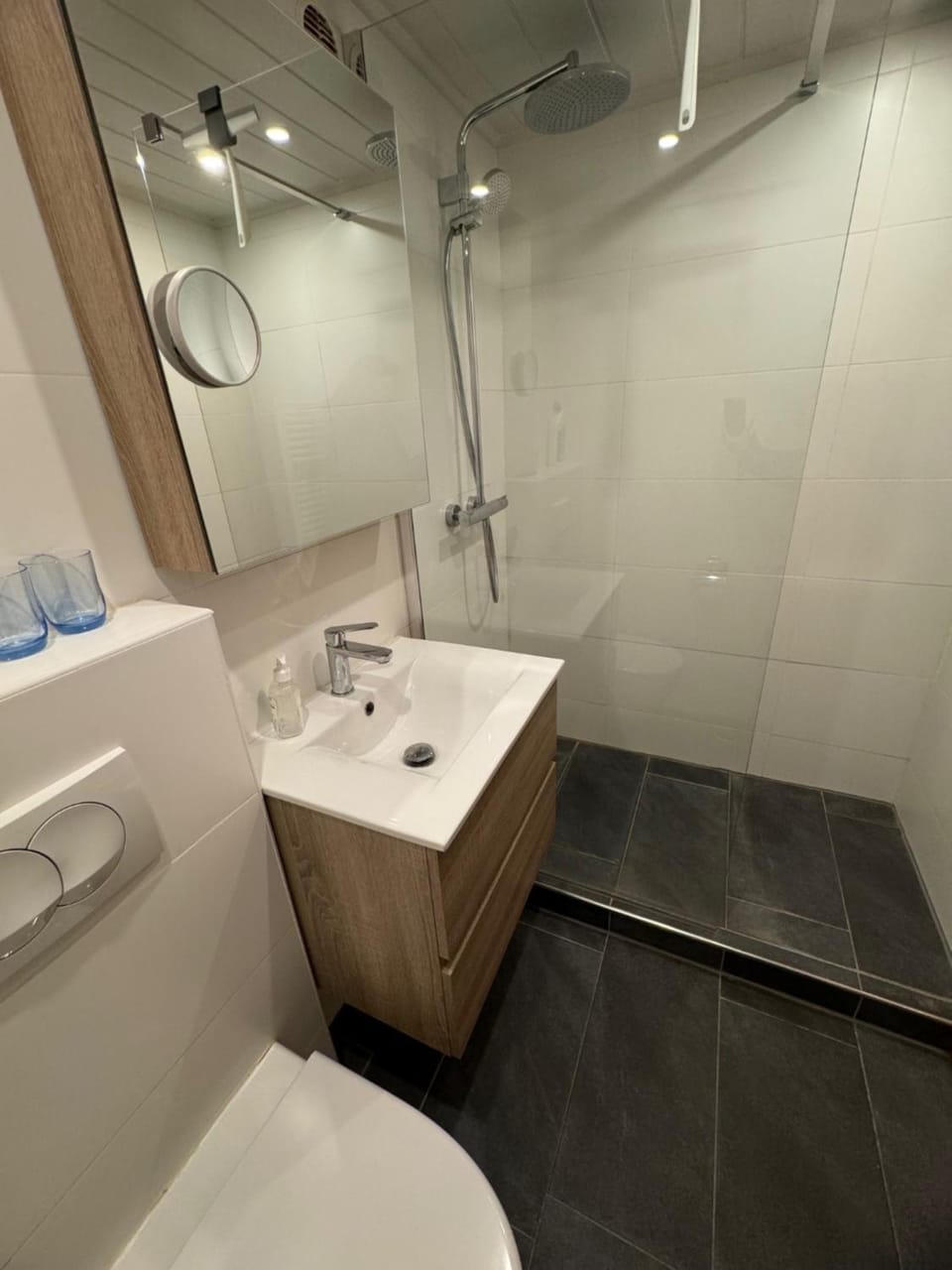 manque un tapis de bains à la sortie de la douche.
