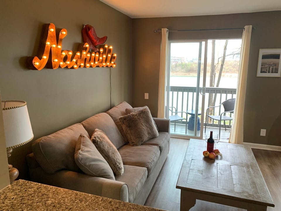 Business stays, family stays, couples stay, getaway vacation, and rental in East Nashville at Riverfront Condo Walk to downtown Nashville with a view for $162 for your next trip.