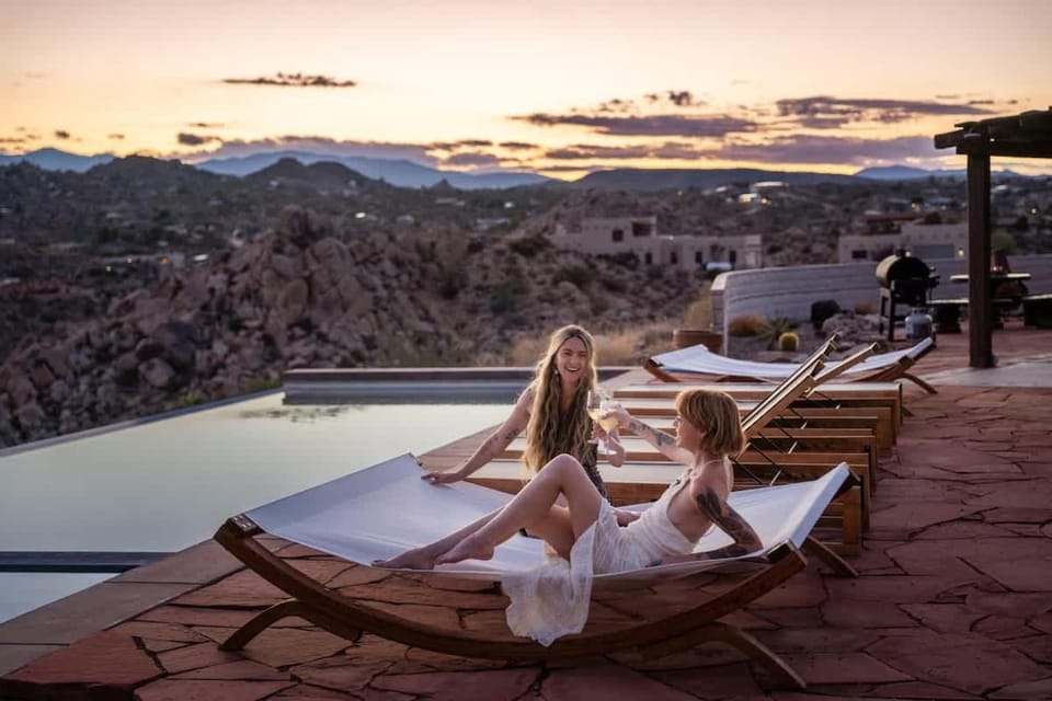 Discover the beauty of Yucca Valley with a stay at Mojave Moon • Group Retreat, Pool, Spa, Pickleball, a top rated House with amenities such as Air conditioning, Balcony/Terrace and Dryer, and more.