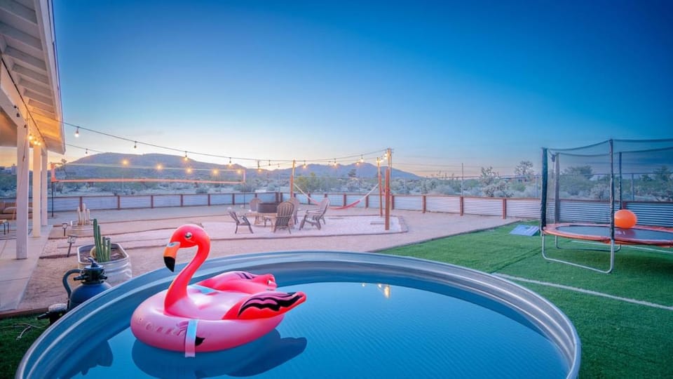 Soak up the beauty of Joshua Tree in our House, Casa Demesne + Container Pool + 10 Min to Joshua Tree National Park + Fire pit. With a range of amenities such as Pets allowed, Family friendly and Non-smoking, you'll feel right at home.