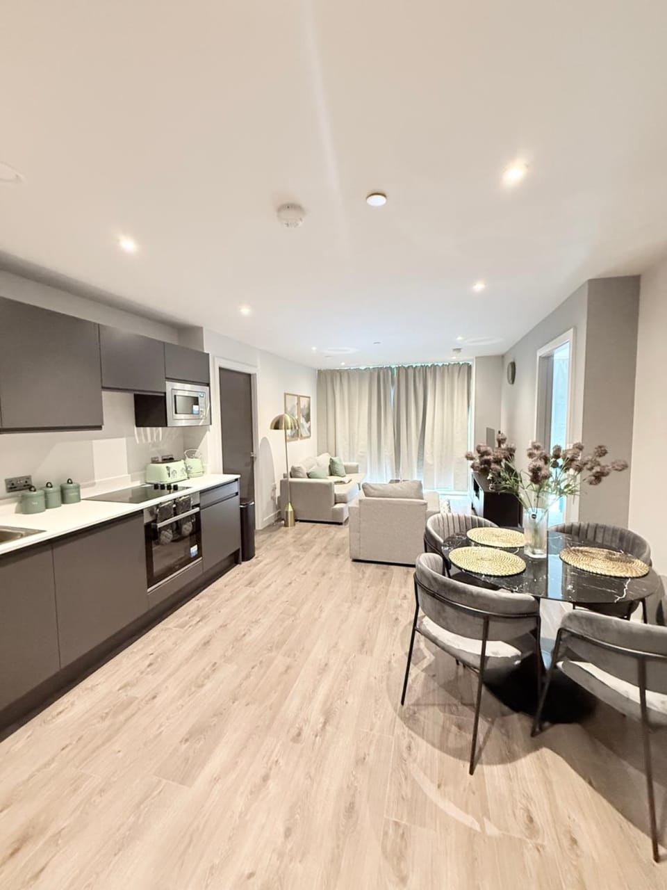 Spacious 2 bed apartment in central location. Very comfortable beds. Lovely set up. Staff were easy to contact and helpful in sorting out things like WiFi access. New apartment building and everything very clean.