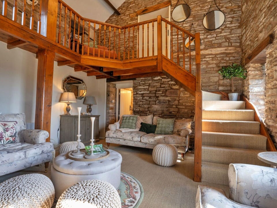 The Cottages Collection at Blackclough Farm offers a spacious 7-room house spanning 260 square meters, perfect for your vacation with friends or family. The property is designed to accommodate up to 12 adults comfortably. The living area features a cozy living room with an open-hearth fireplace, creating a warm and inviting atmosphere. The sleeping quarters consist of five bedrooms: one room with a double bed, three rooms each with a double bed, and one room with three beds. This versatile layout ensures ample space for everyone to enjoy a restful night's sleep.