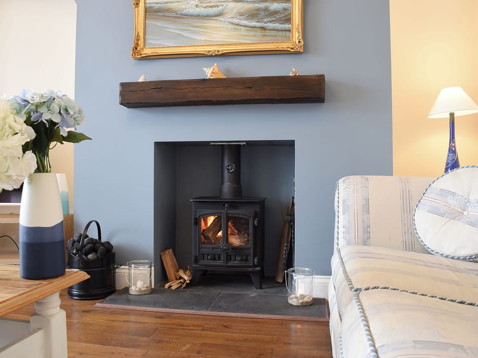 Living room: TV, Freesat, Woodburner