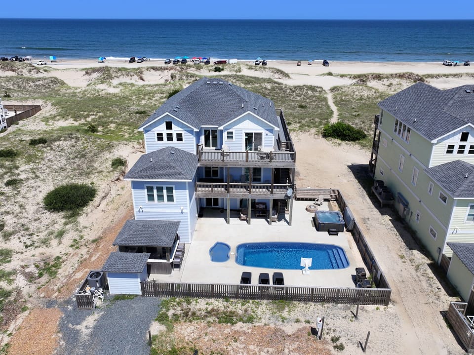 Accessible by 4 x 4 vehicle only! Leave the paved roads and stress behind and discover your own slice of paradise at 4x2105, Blue Dune. Approximately 8 miles up the beach, this Brindley Beach vacation rental provides the ultimate escape. While the wrap-around decks offer unparalleled views of the ocean, OBX sunrises, and wild horses, the bright and spacious interior is a haven designed for making lasting family memories. Enjoy the crystal blue private pool or the short walk right to the Atlantic Ocean! This one-of-a-kind oasis combines stunning natural beauty with all the comforts of home.